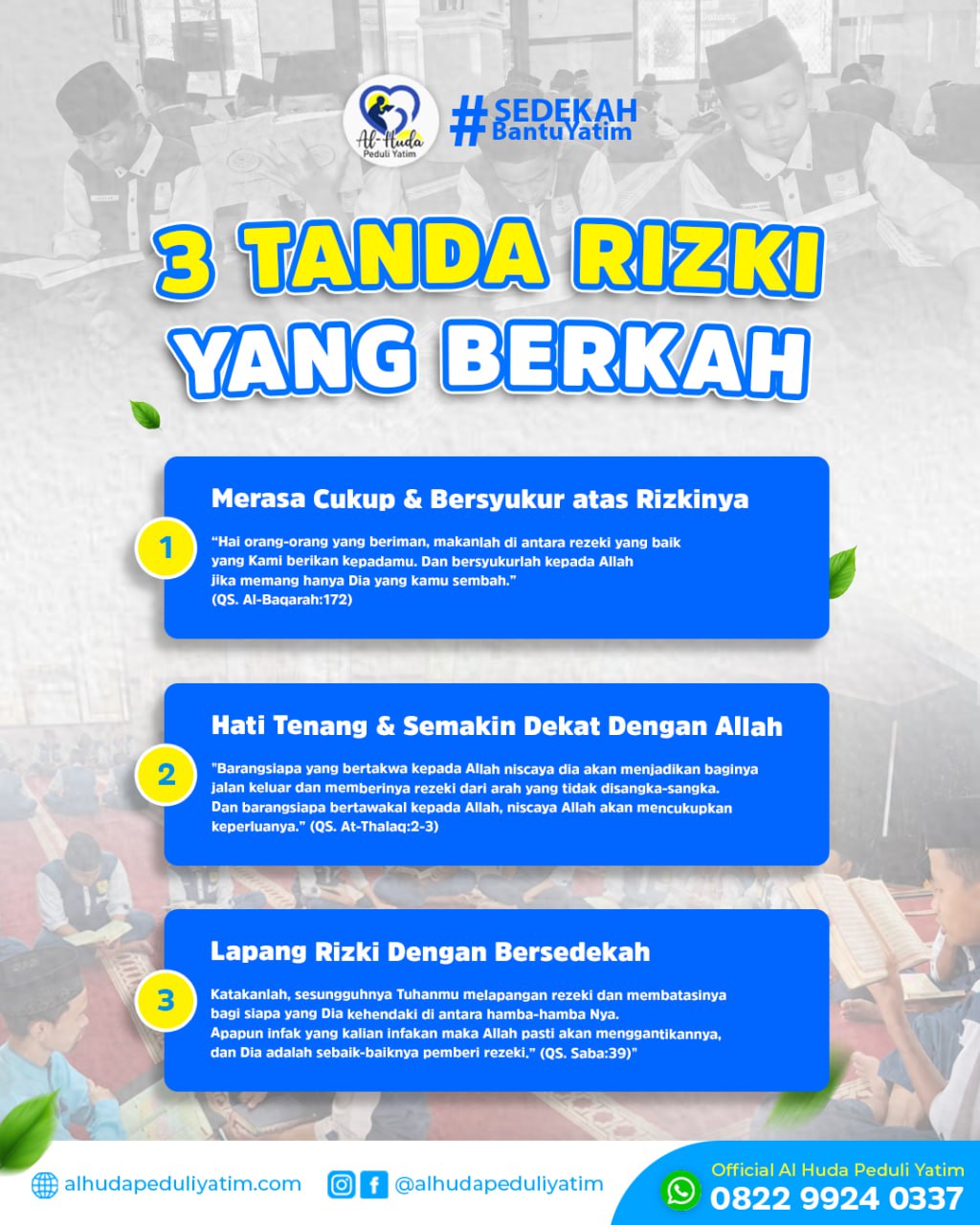 BERSEDEKAH KEPADA YATIM TIDAK MENJADIKAN DIRINYA AKAN LEBIH MISKIN
